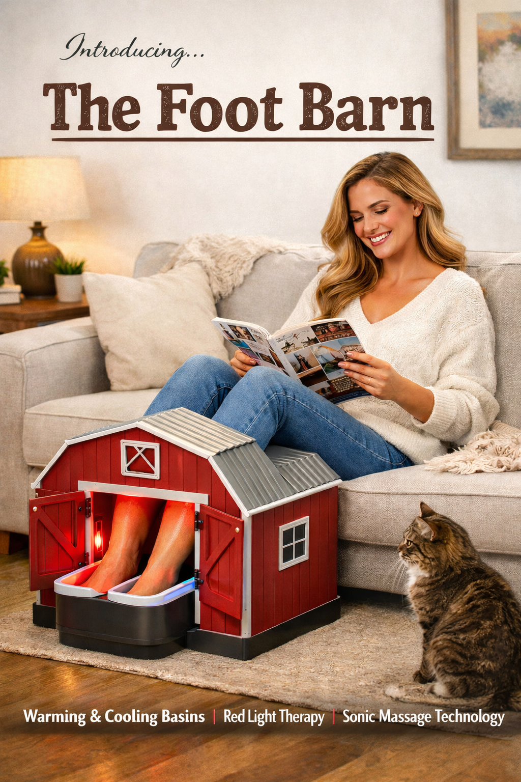 In Q2 of 2023, YD Wellness deployed The Foot Barn, a dedicated relaxation station offering users a private, two-stall foot recovery environment featuring individually calibrated warming and cooling basins, ambient red light therapy lamps, and foot-optimized sub-woofers delivering intermittent low-frequency sonic therapy.