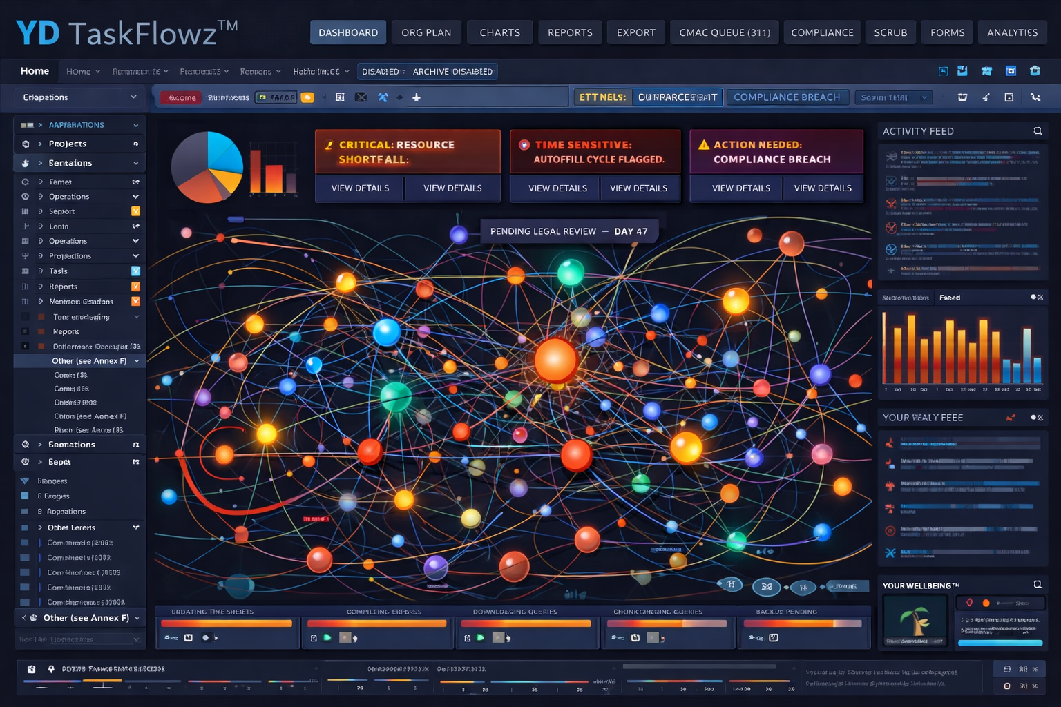 As many of you are (hopefully) aware, YD TaskFlowz™ is the fully integrated, multi-dimensional task orchestration environment that underpins the entire YD employee experience. Its NodeVerse™ interface, a real-time, three-dimensional web of interconnected project nodes, stakeholder dependency clusters, and approval pathways, represents the most sophisticated approach to human task coordination currently deployed at any conglomerate of our size, prestige, or geographical orientation.