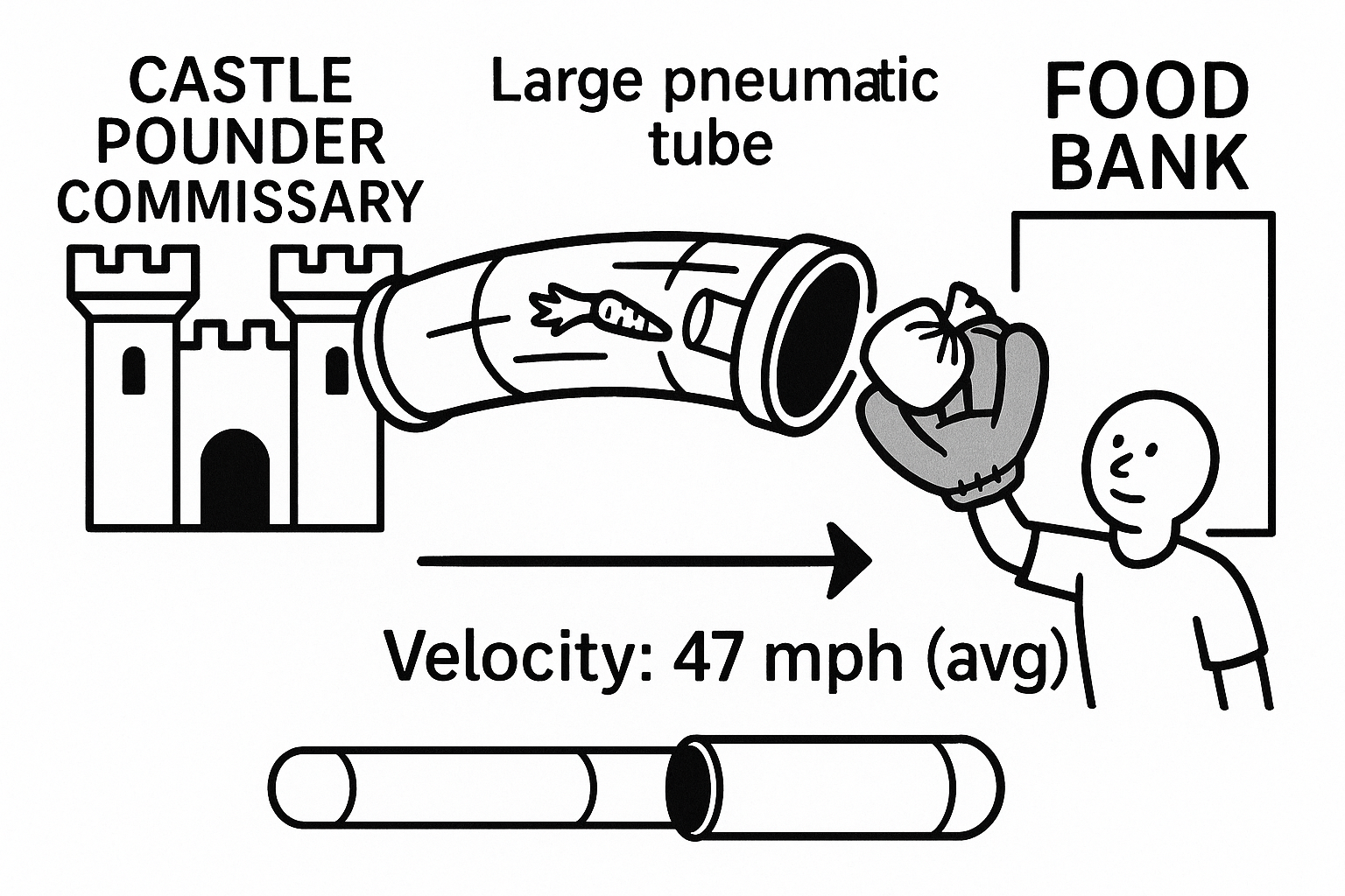 YD Industries is proud to announce the resounding success of our annual New Rochelle Food Bank and Castle Pounder partnership! This year's donation drive involved the distribution of 400 artisinally crafted Castle Pounder Holiday Meal Bags, which were delivered directly to waiting vehicles via our new Pneumatic Food Distribution System (Patent Pending), covering a distance of 2.3 miles.
